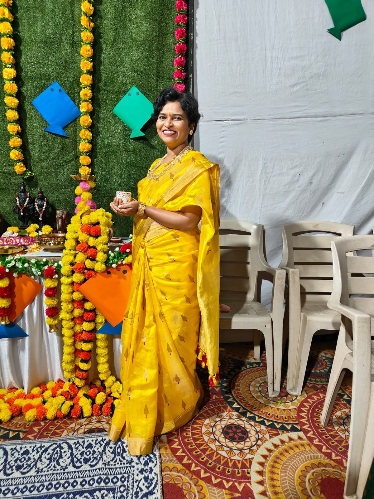 Color: Golden yellow with zari border and woven motifs